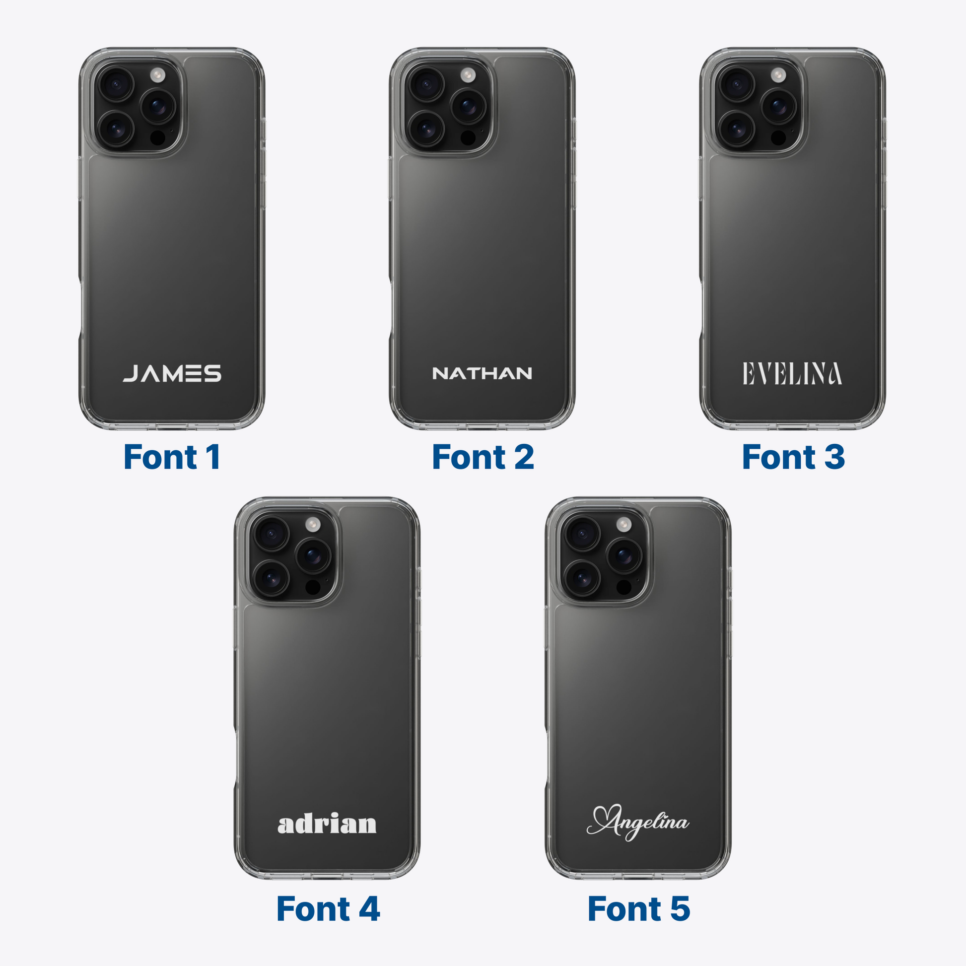 Personalize your Clear Case with your name in 5 premium fonts and choose from 2 font colors to match your style. The transparent finish keeps it simple and sleek, while your custom name makes it truly unique.
